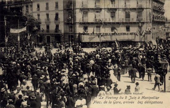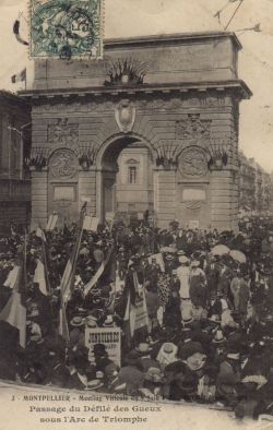 ![]() MONTPELLIER - Meeting viticole du 9 juin 1907 Passage du Défilé des Gueux sous l'Arc de Triomphe ![]() Le Meeting au 9 Juin à Montpellier Défilé Place de la Comédie ![]() Le Meeting au 9 Juin à Montpellier Plac. de la Gare, arrivée des délégations À noter : la photographie est inversée. |